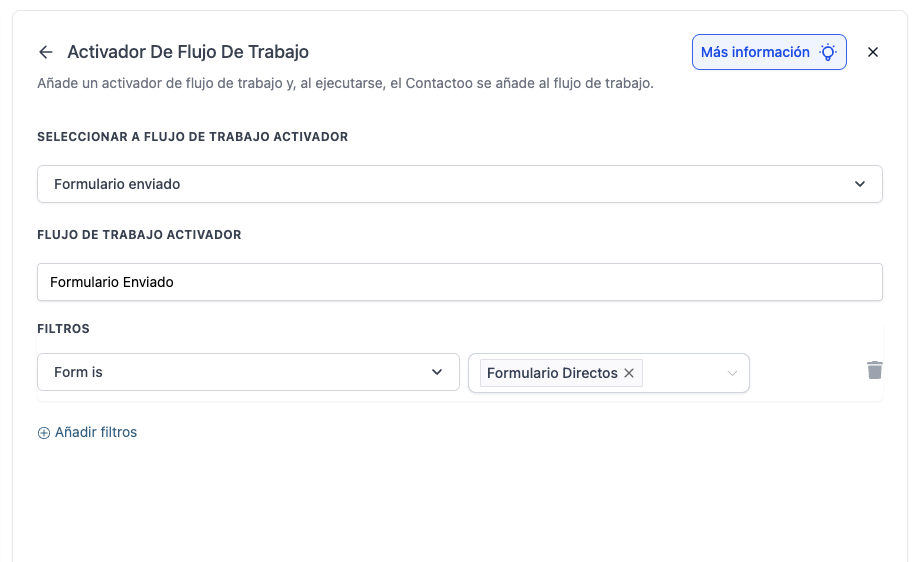 Aquí debes seleccionar el formulario exacto para el que quieres recibir notificaciones, por ejemplo: