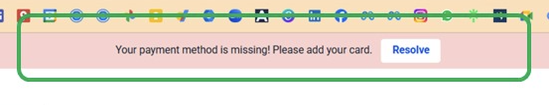 No te preocupes: se trata de un aviso anticipado indicándote que no tienes un método de pago configurado. Tu acceso no se verá afectado y no es necesario realizar ninguna acción de inmediato.