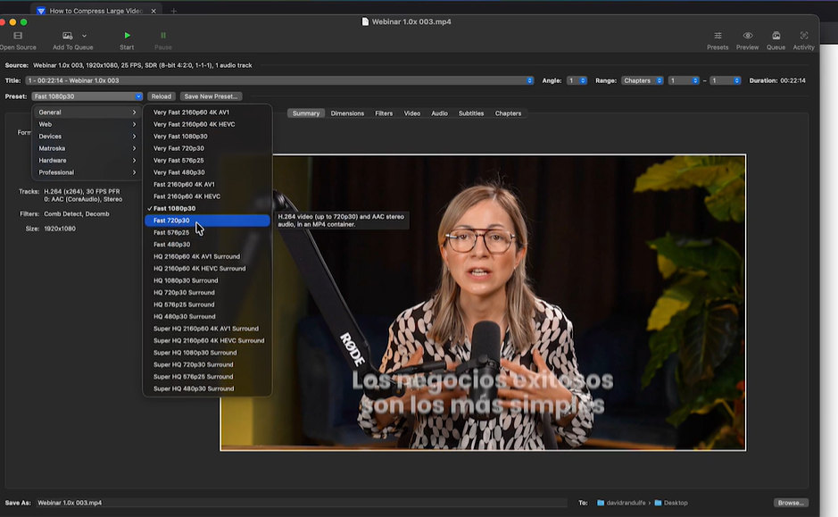 Comprimir el video. Puedes usar handbrake. La opción General: Fast 720p30 va bien. Y descargas.