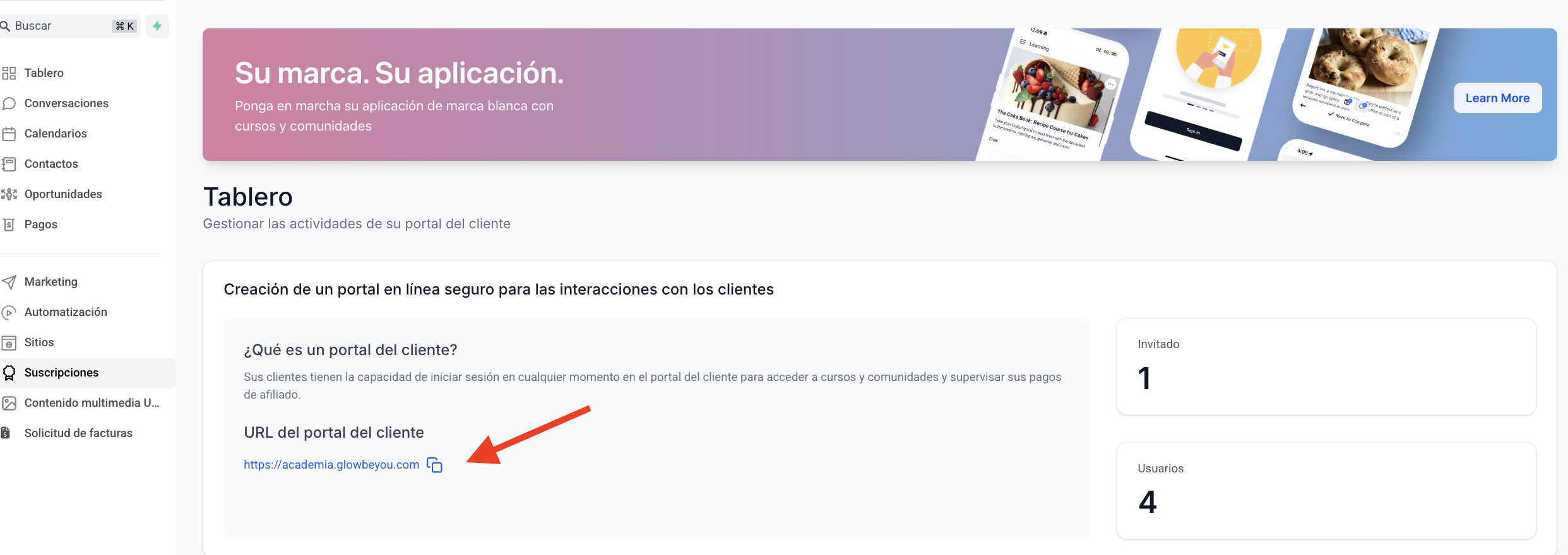 Ve a tu Membresía y copia el enlace de acceso a la escuela y envíaselo al alumno.